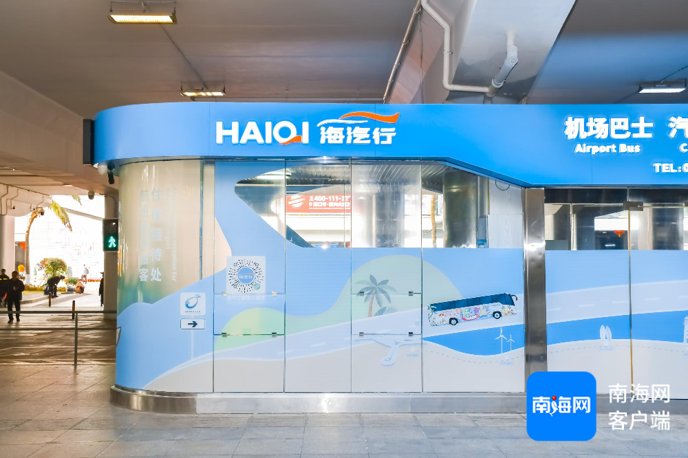 1月21日,??诿捞m機(jī)場(chǎng)到大廳外,一座形似旅游大巴車(chē)造型的“海汽行”美蘭機(jī)場(chǎng)售票亭正式啟用。
